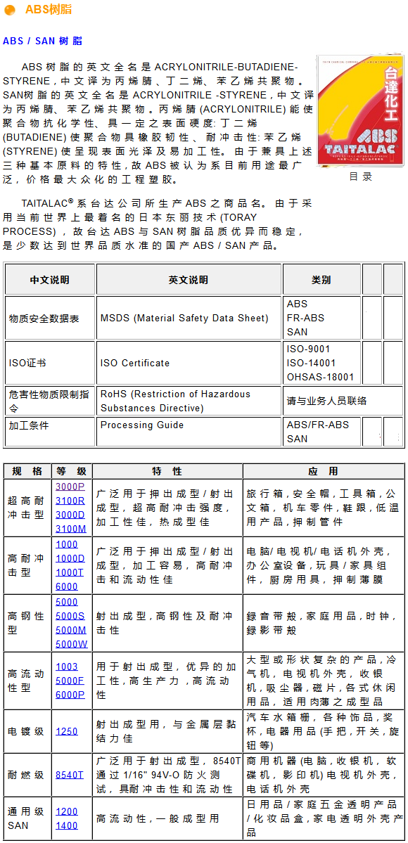 臺灣臺達Taitalac品牌系列ABS塑膠原料
