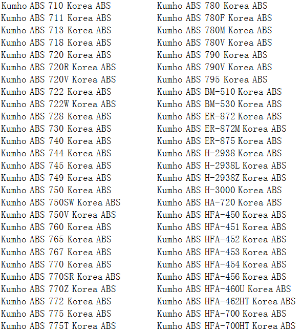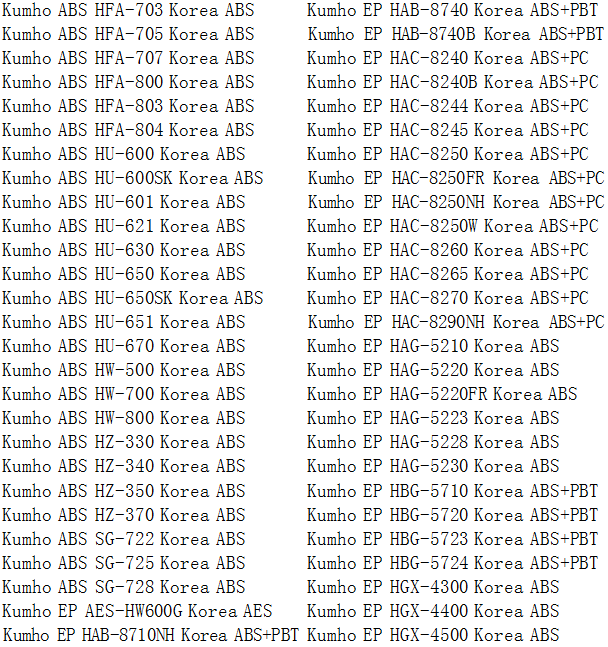 >> 韓國錦湖KUMHO系列ABS塑膠原料