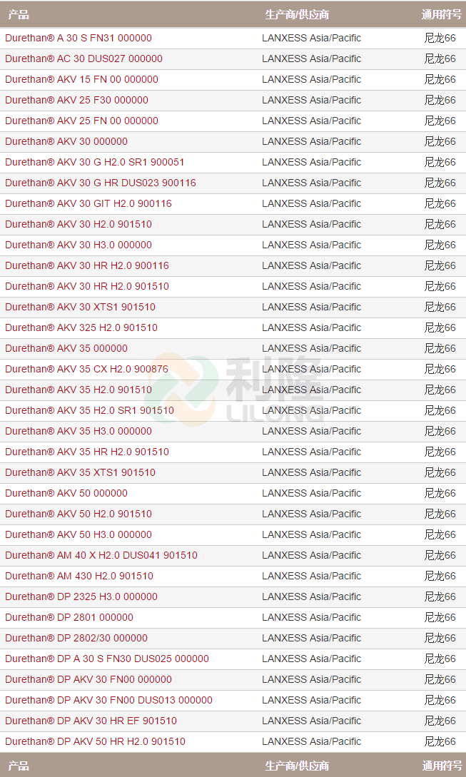 >> 德國朗盛DURETHAN品牌系列尼龍PA66塑膠原料