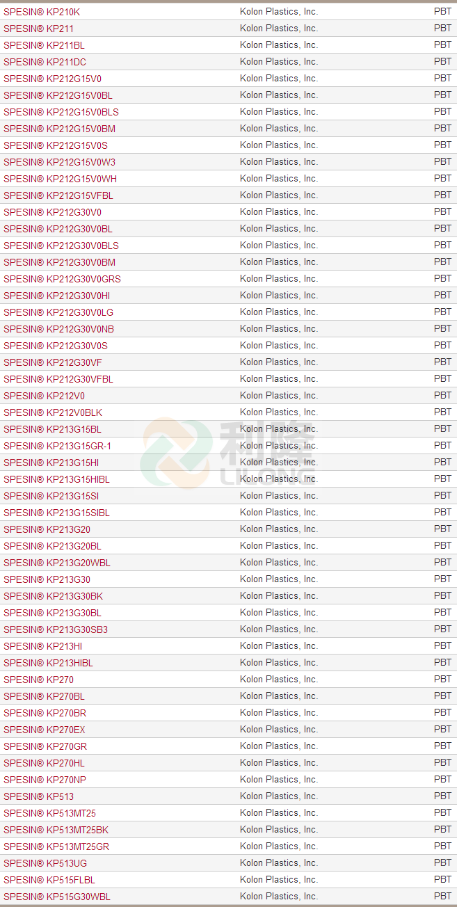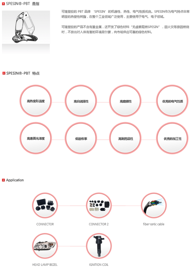 當前位置:塑料 >> 塑膠原料 >> PBT塑膠原料 >> 韓國可隆SPESIN品牌系列PBT塑膠原料