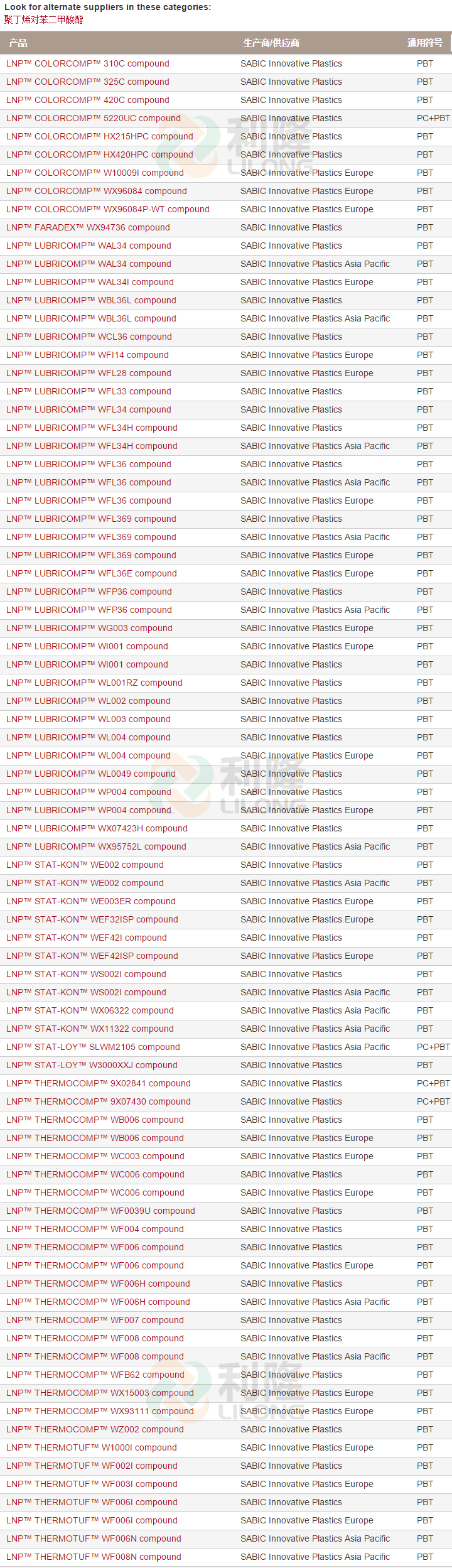 當前位置:塑料 >> 塑膠原料 >> PBT塑膠原料 >> 美國沙泊基礎LNP系列PBT塑膠原料