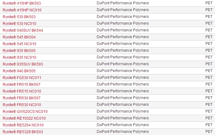 當前位置:塑料 >> 塑膠原料 >> PET塑膠原料 >> 美國杜邦RYNITE品牌系列PET塑膠原料