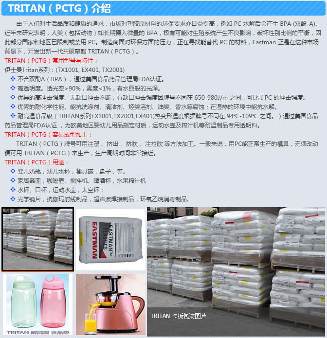 美國伊士曼EASTMAN系列耐高溫PCTG塑膠原料應用