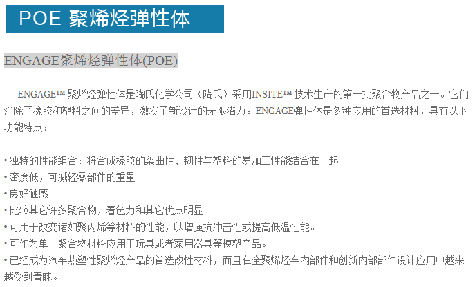 >> 美國陶氏ENGAGE品牌POE聚烯烴彈性體塑膠原料