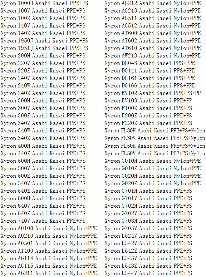 當前位置:塑料 >> 塑膠原料 >> PPO塑膠原料/PPE塑膠原料 >> 日本旭化成XYRON耐高溫PPE(PPO)塑膠原料