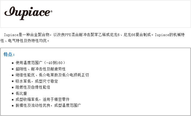 >> 日本三菱IUPIACE高耐熱PPE+PS(PPO)塑膠原料