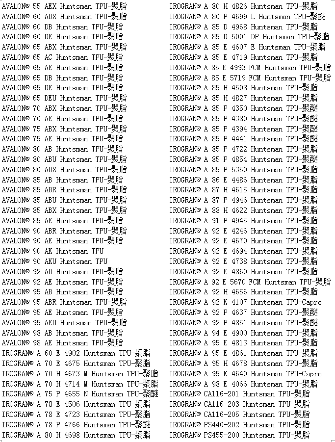 IROGRAN是亨斯邁熱塑性聚氨酯(TPU)系列產(chǎn)品的注冊(cè)商標(biāo)。IROGRAN系列TPU材料性能卓越,即使在極端環(huán)境條件下也能保持優(yōu)異的性能,因此在業(yè)內(nèi)樹立了良好的口碑。 | |